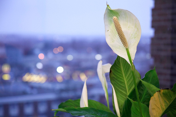 One of the most-reliable indoor plants when it comes to producing blooms, the peace lily sends up shoots with white, sail-like spathes that open to reveal a slender flower. It has lush leaves and can grow up to 3 feet tall. The peace lily is exceptional at removing benzene, formaldehyde, and other harmful VOCs.