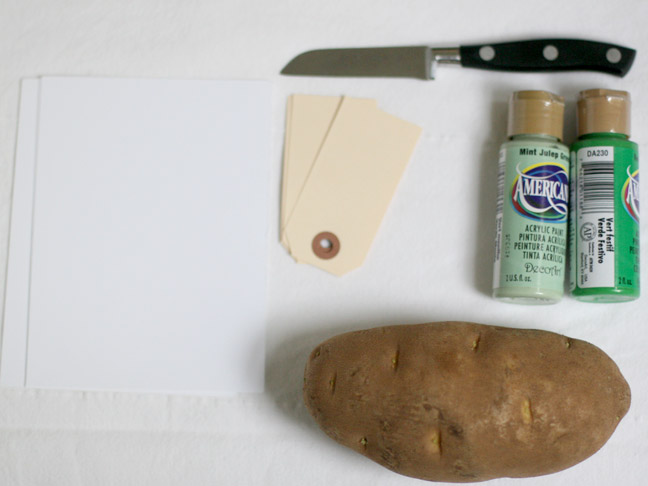 You don’t need fancy stamps to make a fun decorative St. Patrick’s Day card, if you have a rustic potato on hand!
