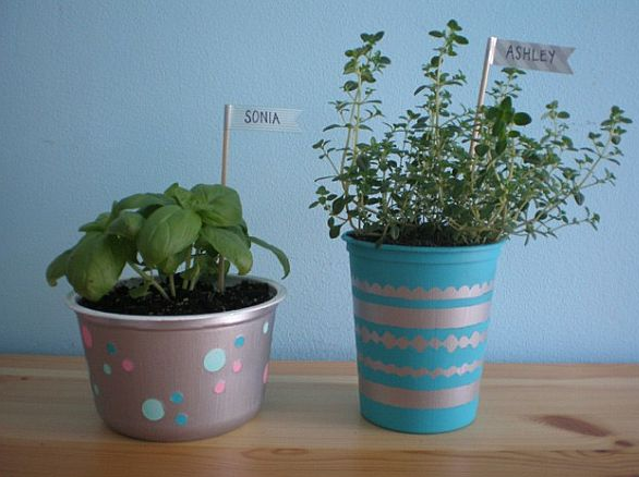 Is we are at the DIY category we should say from the start that this is about making things cheap but original, to suit our needs and practice our skills a little bit. This project involves making small planters from yogurt containers. This is probably the easiest project ever, because involves a simple plastic food container which is thrown away as soon as is empty. To make it look special, spray paint it or apply models on it and let it dry, then simply plant your herbs. When I was a kid, my mom and I made lots of planters like this one.
