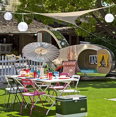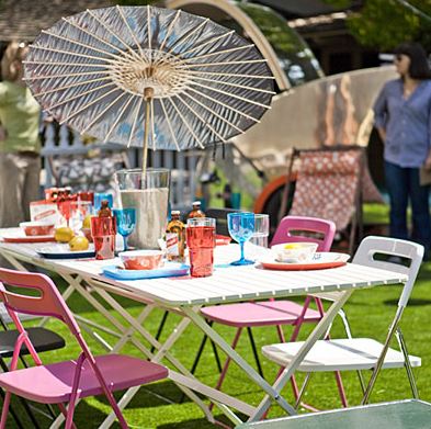 Create a summertime fiesta with a table and chairs from Ikea and deck chairs by Gallant & Jones.