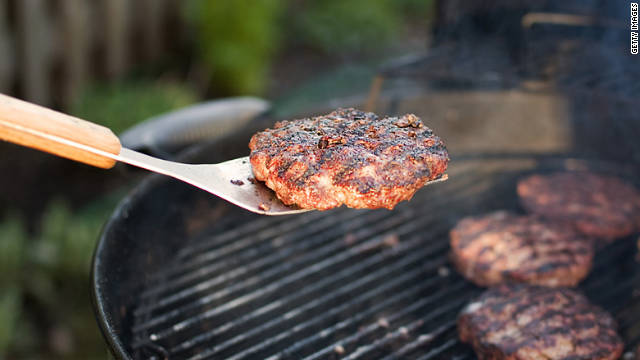 7. Make sure your burger’s cooked: While medium or rare burgers are tasty, you don’t want your burger to make you sick. Insert an instant-read thermometer in the thickest part of the patty to make sure you’ve cooked the meat to at least 160 degrees. But you don’t have to sacrifice the joy of a juicy burger for your health. “I like to place a disk of herb butter in the center of the meat patty,” says Raichlen. Or, try an “inside-out cheeseburger”: mix shredded cheese into your raw burger meat. The cheese melts as it cooks, keeping even well-done burgers moist.