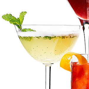 - Muddle cucumber, pomegranate juice, orange juice, agave nectar, lime juice, and a pinch of kosher salt in a cocktail shaker.