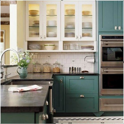 First it was white, then the trend of painting the cabinetry the same as the wall color in soft beige tones (which I still love!), then the super white (for the entire kitchen). Now, I am noticing the trend for rich pops of color for the cabinetry.