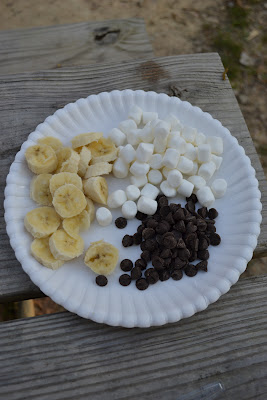 1. Chop up the bananas and get some marshmallows and chocolate chips ready. ( It is good using these ingredients on a camping trip because they don’t need to be refrigerated and you can easily slice the bananas with a plastic knife)