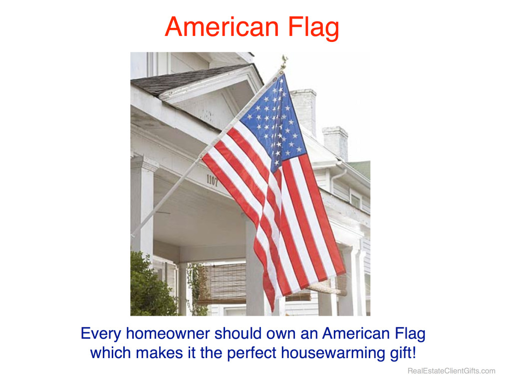 You can’t go wrong with the American flag, especially when the new home owners are following the American dream. This is a wonderful housewarming gift since it is a gift everyone needs, but seldom get around to buying. Wouldn’t it be great to be known as the broker who gifts American flags! Picture your entire realty farm proudly displaying their flags on the 4th of July!