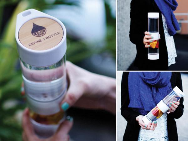 Created by teen entrepreneur Carter Kostler, Define Bottle Sport lets you enjoy fruit-infused water on the go. Chopped herbs and fruit can be placed into the bottom half of the bottle, while a filter separates the fruit chunks from the top of the section that you drink out of—and presto! Fruit water minus any chunks you could choke on. ($29.95; definebottle.com)