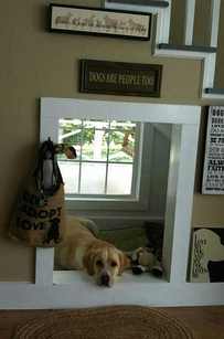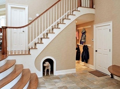 1. Dogs are people, too, which is why your dog should probably get his or her own little haven underneath the stairs.