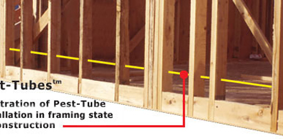 Pest-tube installation means that all the exterminator has to do is inject some stuff into one end to keep insects and rodents away.