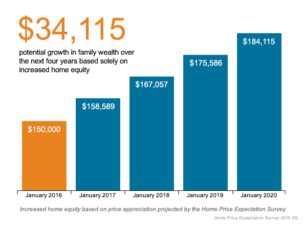 Below is an example of the home equity that would be accrued over the course of the next four years if you were to buy a home by the end of this year; based on the results of the Home Price Expectation Survey.