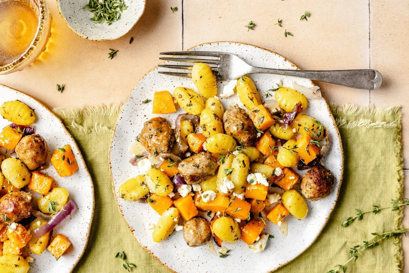 Sheet Pan Gnocchi with Spicy Sausage, Butternut Squash & Hot Honey