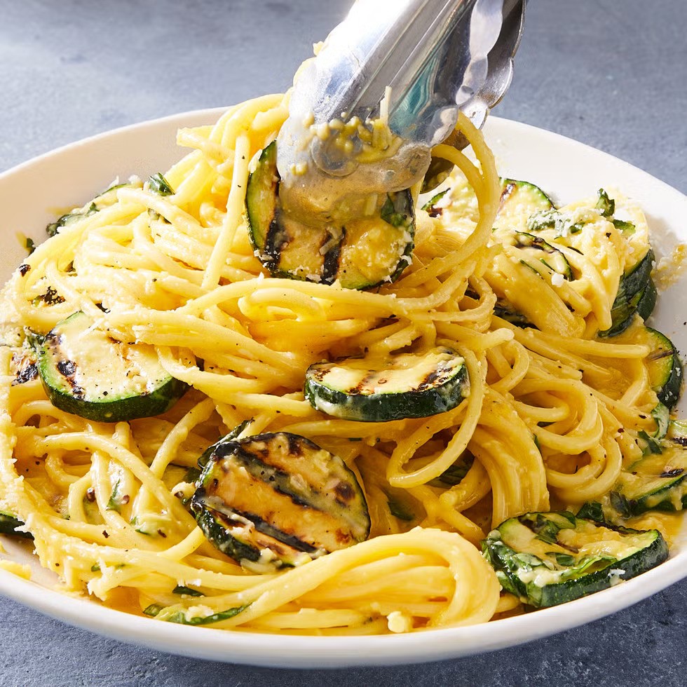Add pasta and zucchini to egg mixture, gently but quickly tossing to incorporate hot pasta and egg mixture, until sauce is glossy and coats pasta.