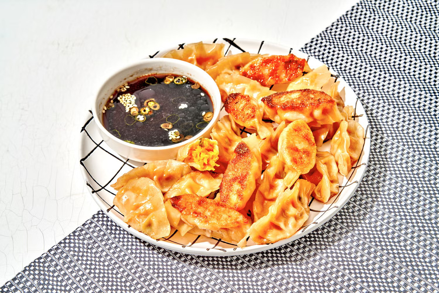 6. In a large skillet over medium-high heat, heat 2 tablespoons vegetable oil. Add potstickers, seam side up in a single layer, working in batches as needed. Sear for 2 minutes or until bottoms are golden. Reduce heat to low and very carefully add ¼ cup water (it will splatter!). Cover with a lid and let steam for 5 minutes or until wrappers are soft. Remove from pan and carefully wipe pan dry and repeat with remaining potstickers.