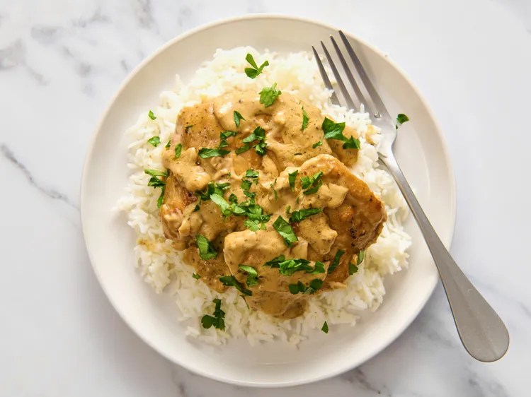 - Divide chicken among 4 plates over rice. Turn the heat back to medium, add lemon juice, and cook until sauce thickens and darkens a bit, 3 to 5 minutes.