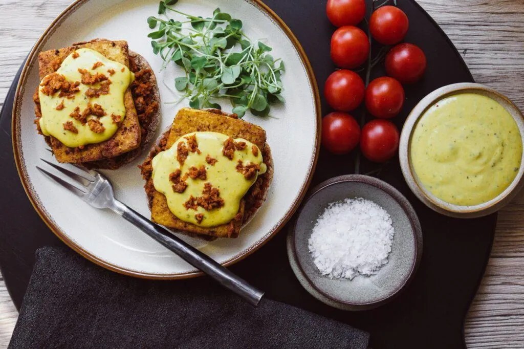 Vegan Chorizo & Tofu “Eggs” Benedict